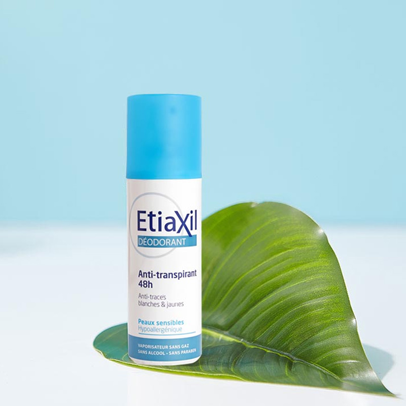 Xịt Khử Mùi Hằng Ngày Dạng Phun Sương Etiaxil Deodorant 48h Aérosol là xịt khử mùi chứa các thành phần kháng khuẩn, giúp ngăn chặn sự hình thành vi khuẩn cũng như kiểm soát lượng mồ hôi tiết ra ở vùng da dưới cánh tay, tạo cảm giác khô thoáng, dễ chịu thuộc thương hiệu Etiaxil đến từ Pháp.