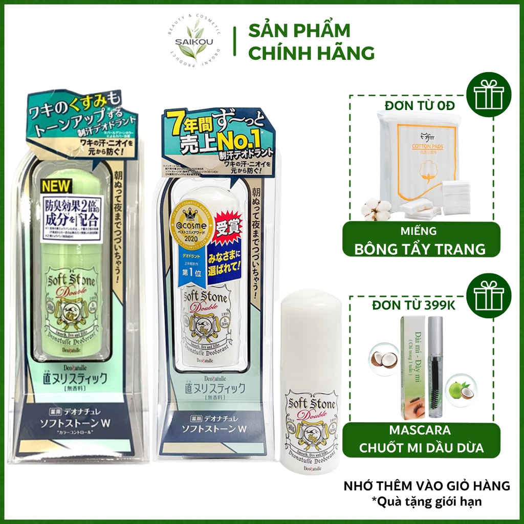 Lăn Khử Mùi Đá Khoáng Dạng Sáp Deonatulle Soft Stone W Double Deodorant là sản phẩm khử mùi cho nữ đến từ thương hiệu Deonatulle Nhật Bản, được chiết xuất từ bột muối đá khoáng Alum tự nhiên có tác dụng ngăn tiết mồ hôi và khử mùi hiệu quả, giúp giữ cho vùng da dưới cánh tay luôn sạch sẽ khô thoáng suốt cả ngày dài, giúp phái đẹp tự tin hơn khi giao tiếp.