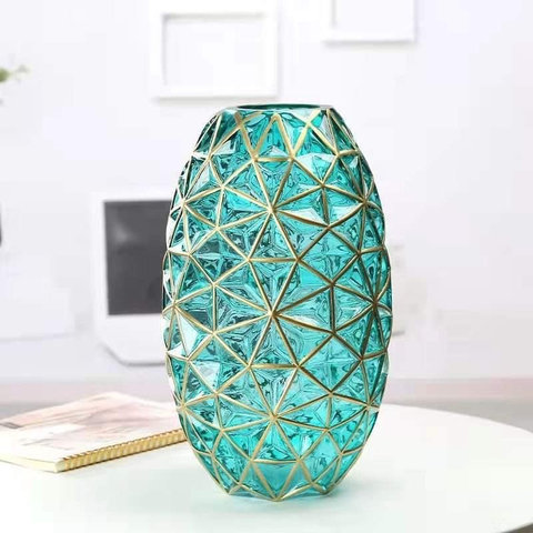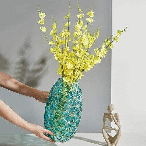 Bình hoa, lọ hoa thủy tinh viền vàng kẻ khối nổi bật, sang trọng , độc đáo