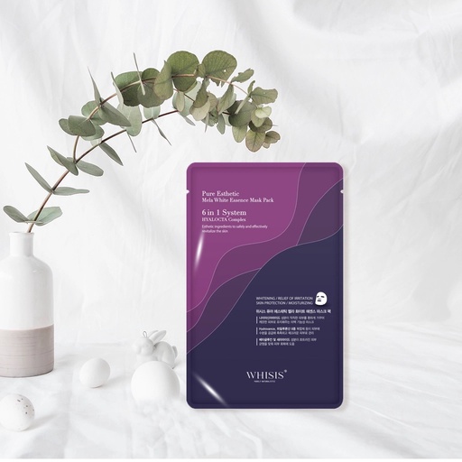 - Mặt nạ WHISIS Pure Esthetic Mela White Essence Mask Pack chứa Niacinamide hỗ trợ dưỡng sáng và Ceramide tăng cường hàng rào bảo vệ da hơn.