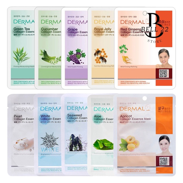 Mặt nạ Dermal Collagen Mask được ưa chuộng tại Hàn Quốc và các nước trên thế giới, được chiết xuất từ: trà xanh, mật ong, dưa leo, nha đam lô hội, mơ, ngọc trai, nho, rong biển,... giúp cung cấp dưỡng chất cho da, cung cấp độ ẩm cho da, giúp da tươi mát, tăng sự đàn hồi cho da, dưỡng da khỏe đẹp.