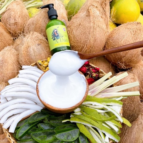 Chứa các thành phần: Nước tinh khiết, Dầu dừa, lá lô hội, Vitamin E, Vỏ bưởi