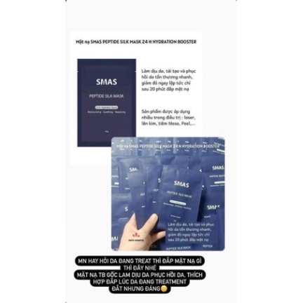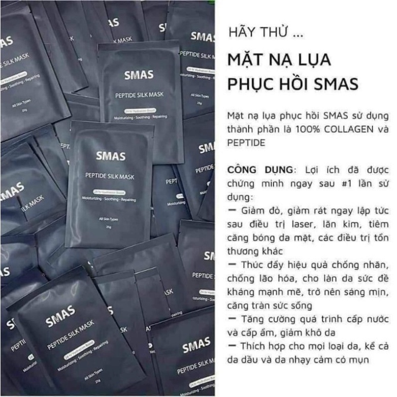 Nếu muốn trải nghiệm cảm giác chăm sóc như tại spa thì các nàng không thể bỏ qua dòng mặt nạ SMAS với các thành phần nổi bật trong công thức dưỡng da gần đây là peptide kết hợp cùng collagen và nhiều dưỡng chất khác, sản phẩm giúp nuôi dưỡng, bảo vệ và phục hồi làn da nhanh chóng sau các liệu trình điều trị chuyên sâu.