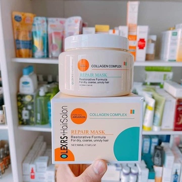 - Kem ủ tóc Olexrs Collagen tạo ra lớp bảo vệ cho chân tóc, phù hợp với tóc uốn, duỗi hoặc nhuộm.