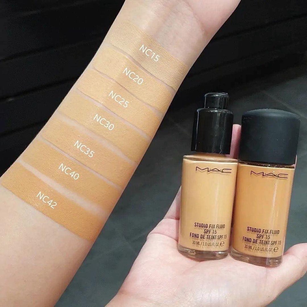 Trong số các tông màu của Kem nền kiềm dầu MAC Studio Fix Fluid foundation SPF 15 có thể kể đến NC15: Da Trắng; NC20: Da Trung Bình sẽ mang đến cho các nàng một lớp nền hoàn hảo, khô thoáng và không gây khó chịu.