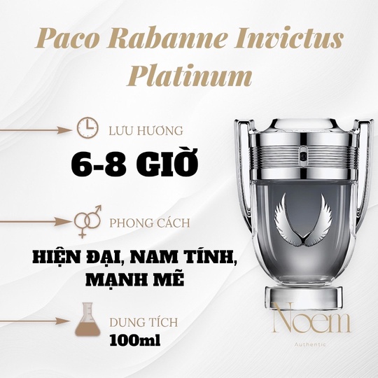 • Tên sản phẩm: Nước Hoa Paco Rabanne Invictus Platinum EDP 100ML.