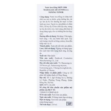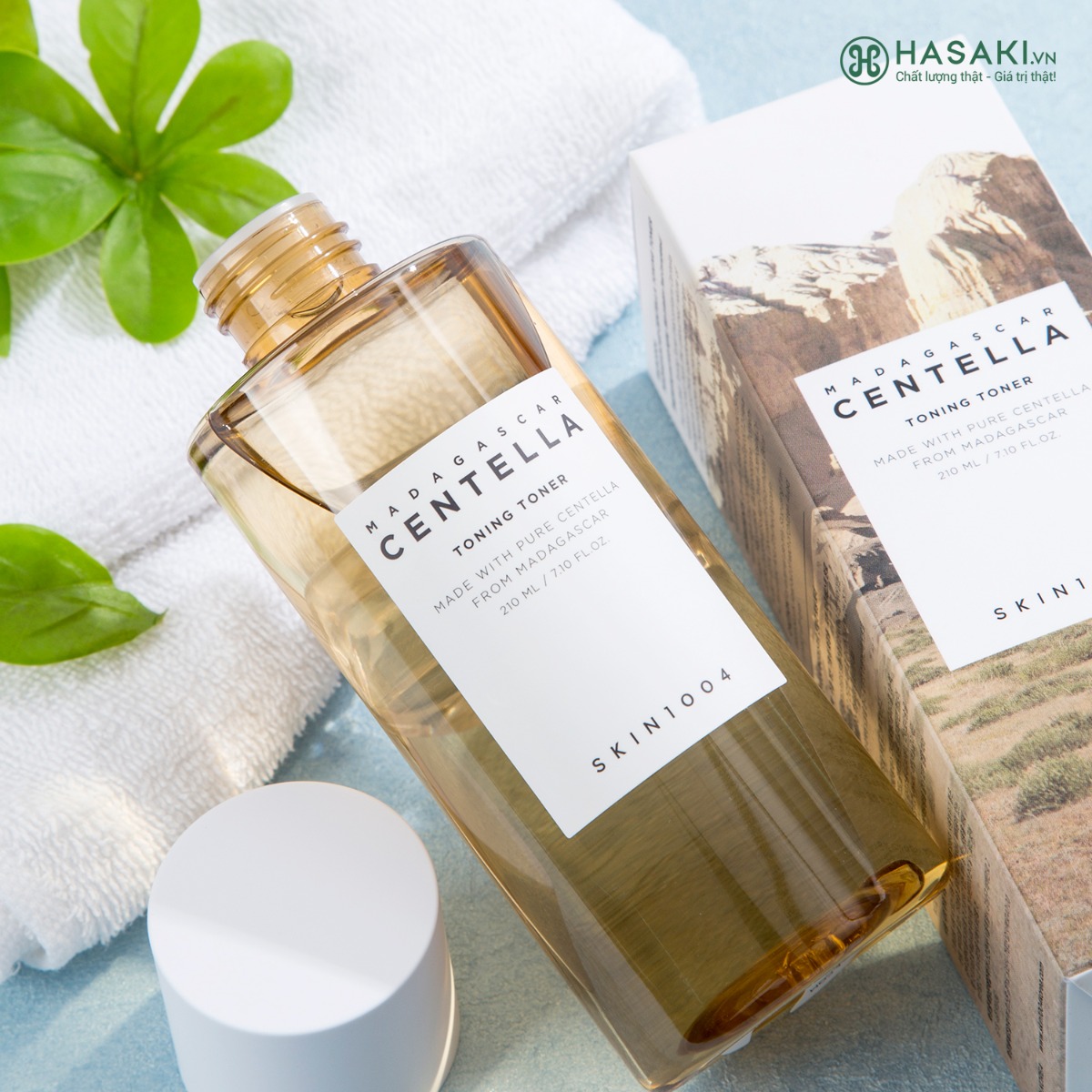 Nước hoa hồng chiết xuất rau má hỗ trợ phục hồi da, tái tạo da Skin1004 Madagascar Centella Toning Toner từ thương hiệu Skin1004 của Hàn Quốc giúp loại bỏ được chất nhờn, bụi bẩn còn sót lại tận sâu trong lỗ chân lông, vừa cung cấp độ ẩm cho da, cân bằng PH cho da hiệu quả, vừa có công dụng làm se khít lỗ chân lông. Chiết xuất từ thành phần tự nhiên, êm dịu cho da lại có tác dụng phục hồi da bị tổn thương nên da mụn, nhạy cảm vẫn có thể sử dụng nước hoa hồng này.