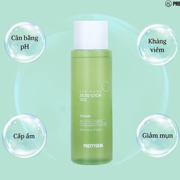 Toner Giúp Cân Bằng, Dưỡng Trắng Da Chiết Xuất Rau Má Pretty Skin - PrettySkin The Pure Jeju Cica100 Toner 250ml