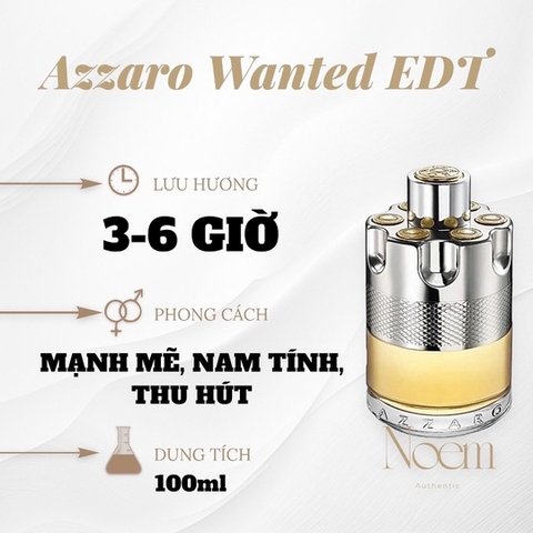 • Azzaro Wanted gợi lên bản chất nam tính, gan góc, đầy bản lĩnh của những chàng cao bồi miền viễn Tây . Wanted từ khi ra mắt đã tạo ra một làn sóng thu hút sự tò mò về hình thức lẫn mùi hương bên trong vô cùng lạnh lùng nam tính mạnh mẽ và thu hút .