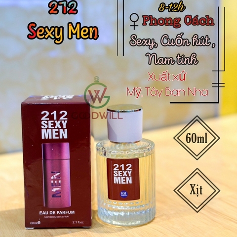 212 Sexy Men của hãng Carolina Herrera thuộc .mang hình ảnh một chàng trai thành thị sở hữu một hương thơm nồng ấm, gợi cảm luôn biết cách thu hút tạo ấn tượng với nữ giới 212 Sexy Men là chai nước hoa có một mùi hương gợi cảm, tươi mát đầy ấm áp dành cho phái mạnh.dòng nước hoa hương thơm dương xỉ Phương Đông. Đây