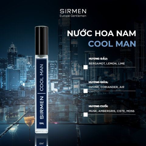 Nước hoa nam SIRMEN COOL MAN Eau de Parfum châu Âu cao cấp chai 10ml thơm thanh mát, trẻ trung, năng động.