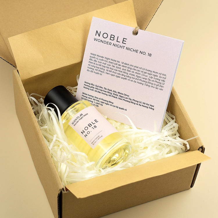 Dòng nước hoa NOBLE WONDER NIGHT NICHE NO. 18 dành cho phái nữ có hương thơm nữ tính, quyến rũ, cuốn hút, hương thơm bất tận dành tặng cho các cô gái ngọt ngào. Sự mở đầu đầy tươi mát của Táo Xanh, Quả Đào và Nhóm Citrus. Lớp hương tiếp theo là sự kết hợp hài hoà của Hoa Hồng, Violet, Ngọc Lan Tây và Phong Lữ vô cùng bay bổng, dịu ngọt. Và kết thúc sâu lắng bằng hơi thở Phương Đông từ Gỗ Đàn Hương, Hổ Phách, Vani ngọt ngào quyến rũ và Xạ Hương Trắng như lạc vào lâu đài huyền bí nhưng không kém phần ấm áp và thanh lịch.