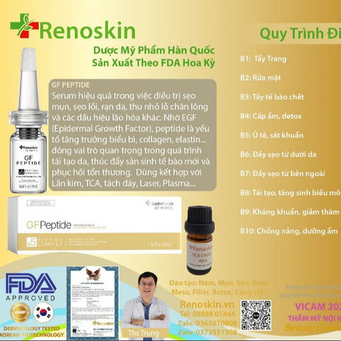 Serum GF PEPTIDE RENOSKIN hiệu quả trong việc điều trị sẹo mụn, sẹo lồi, rạn da, thu nhỏ lỗ chân lông và các dấu hiệu lão hóa khác.