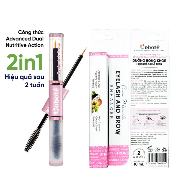 Serum dưỡng mi & mày thiên nhiên Coboté được sản xuất trong một quy trình khép kín. Công thức Advanced Dual Nutritive Actionhiệu quả là sự kết hợp hoàn hảo của Dầu dừa tươi100% cùng các thành phần thảo mộc khác tạo thành giải pháp dưỡng mi và mày hoàn chỉnh, giúp nuôi dưỡng và kích thích mọc mi từ bên trong đồng thời bảo vệ khỏi những tác động có hại bên ngoài, mang lại cho bạn hàng mi đen dài khỏe mạnh sau 4 tuần sử dụng.