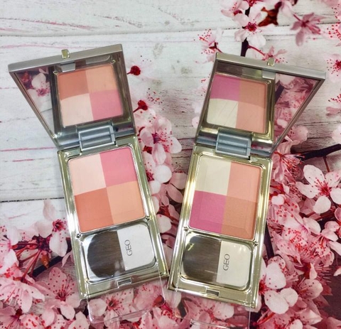 Phấn má GEO gồm có 4 ô màu trong 1 hộp, thêm nhiều sự lựa chọn cho bạn. Từ sắc hồng tự nhiên cho đến sắc cam, cam nâu, những tông màu thịnh hành của phấn má. Có thể sử dụng riêng rẽ hoặc kết hợp để cho những hiệu ứng cụ thể, chẳng hạn trộn 4 tông màu sẽ tạo ra 1 tông màu đặc biệt để trang điểm má và tạo điểm nhấn cho khuôn mặt hay trộn 2 ô một để có màu cam nâu, hồng nâu…