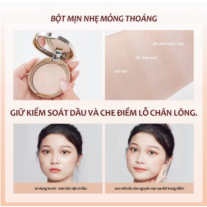 Sản phẩm có khả năng nâng tông da tối ưu, giúp hấp thụ bã nhờn và dầu thừa trên da, lớp phấn bền màu, khả năng che phủ các khuyết điểm trên da tốt.