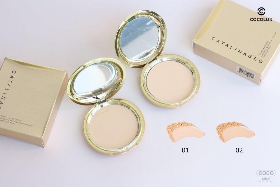 Phấn phủ GEO vàng Catalina Geo Pact có hai tông màu cực kỳ phù hợp với làn da người châu Á. Bao gồm: