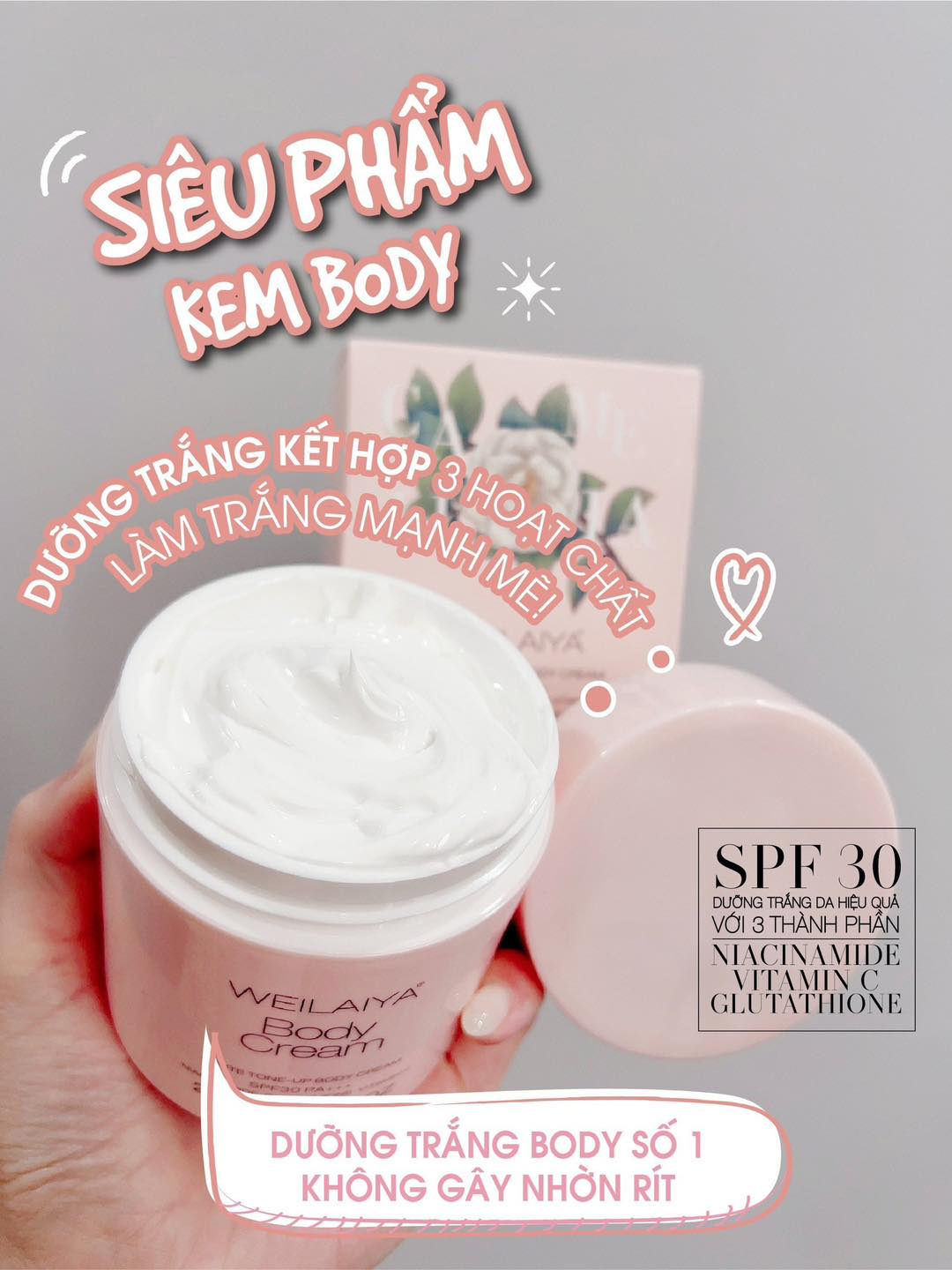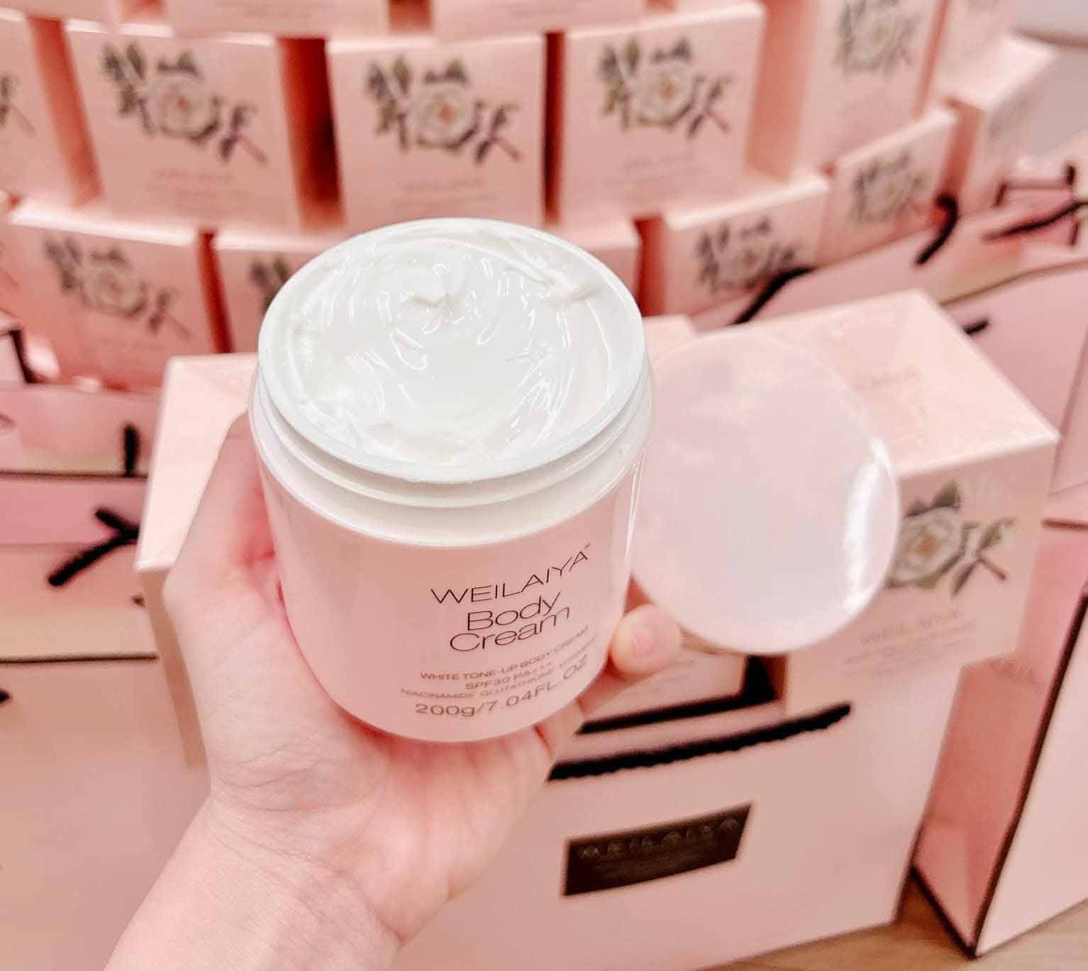 Weilaiya White Tone-Up Body Cream SPF30 PA+++ ứng dụng công nghệ "cảm biến sáng" đang rất hot tại Châu Á vào kem kích trắng nâng tone da body đem lại hiệu ứng trắng trong toả sáng sang trọng. Giúp trắng da một cách tự nhiên toả sáng, chỉ cần thoa 1 lớp mỏng, sau 5p lớp mỏng này càng lâu càng trắng. Công nghệ cảm nhiệt, FLEX SOME hạt kem mềm chảy hoá lỏng siêu thẩm thấu ngay khi tiếp xúc độ ấm của da.