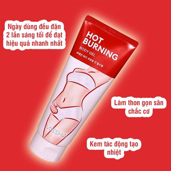- Sản phẩm dạng gel, thẩm thấu nhanh và không gây khó chịu cho da, không ảnh hưởng xấu đến sức khỏe cũng như dị ứng đối với da nhạy cảm. Kem tan mỡ Missha Hot Burning Perfect Body Gel được đánh giá cao bởi là biện pháp loại bỏ mỡ thừa hiệu quả, nhanh chóng lại an toàn, giúp bạn lấy lại vóc dáng và sự tự tin trước ánh nhìn của mọi người trong thời gian ngắn sử dụng.