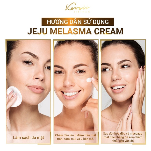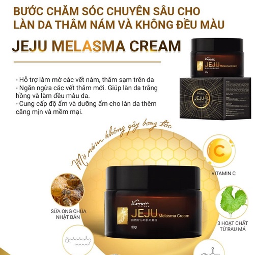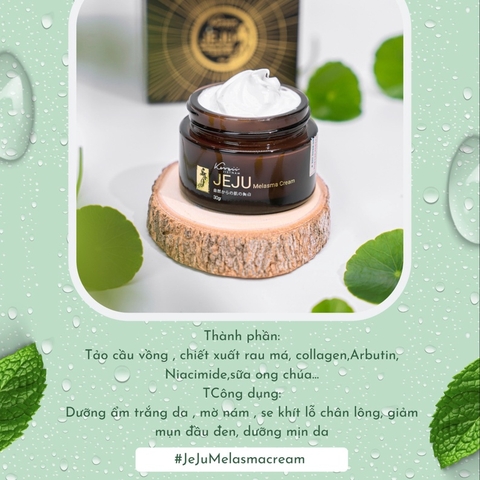 Sản phẩm kem dưỡng trắng da JeJu kết hợp các tinh chất rau má , rảo biển JeJu và các hoạt chất vàng trong làng trị nám như Arbutin , Niacimide, giúp thẩm thấu nhanh vào da.