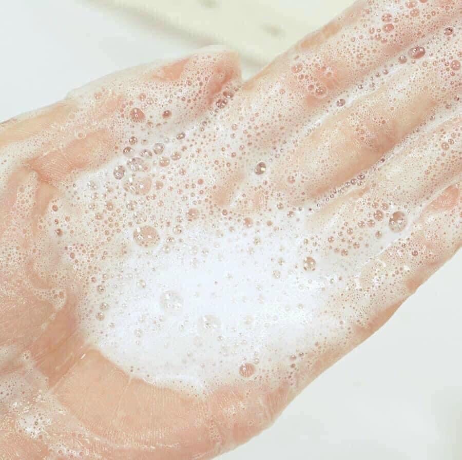 - Sau khi làm sạch da với kem tẩy trang. Cho một lượng vừa đủ sữa rửa mặt vào lòng bàn tay. Xoa đều và massage nhẹ lên mặt rồi xả sạch lại với nước.