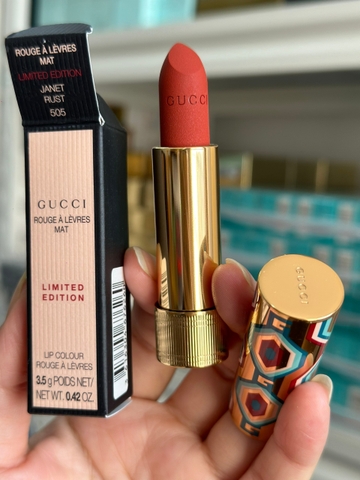 Son Gucci 505 Limited do đích thân giám đốc sản xuất lên ý tưởng thiết kế, vì thế đừng bỏ lỡ siêu phẩm son môi này. Hãy nhanh tay sở hữu cho mình một cây son Gucci 505 Janet Rust và những người thân yêu của mình thôi nào!