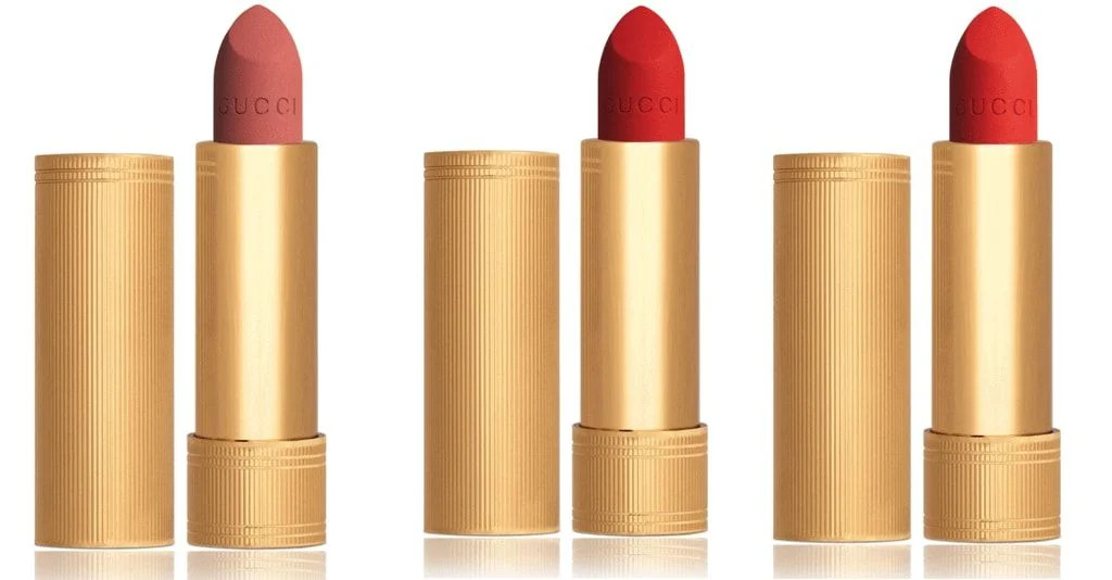 - Son Gucci 500 Odalie Red Matte thiết kế ấn tượng với tông vàng chủ đạo kết hợp hoa văn đầy tinh tế, sang trọng.