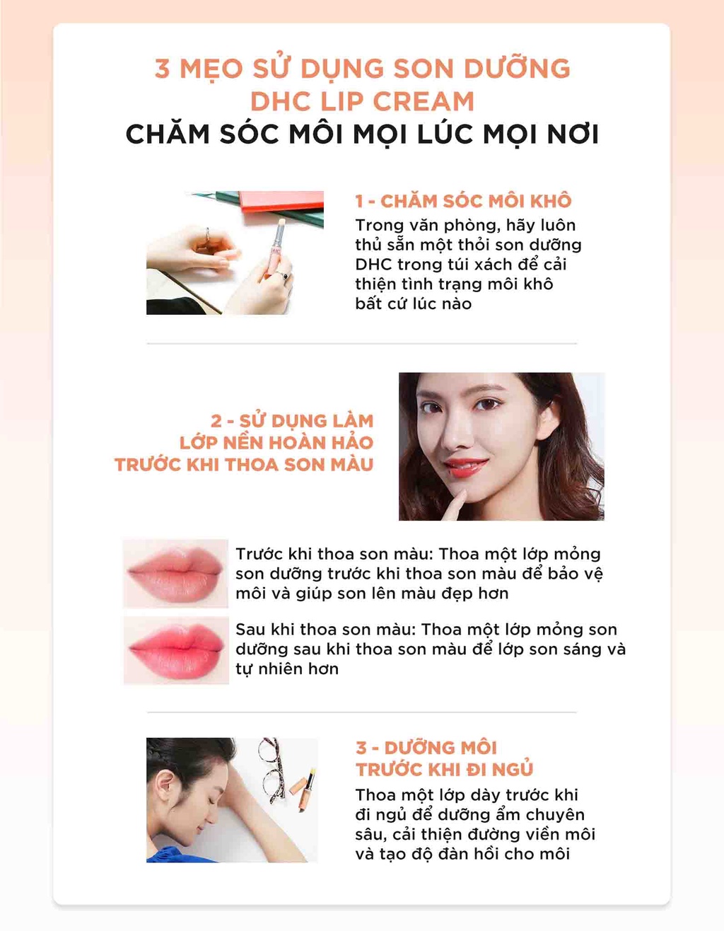3 mẹo sử dụng son dưỡng DHC Lip Cream chăm sóc môi mọi lúc mọi nơi: