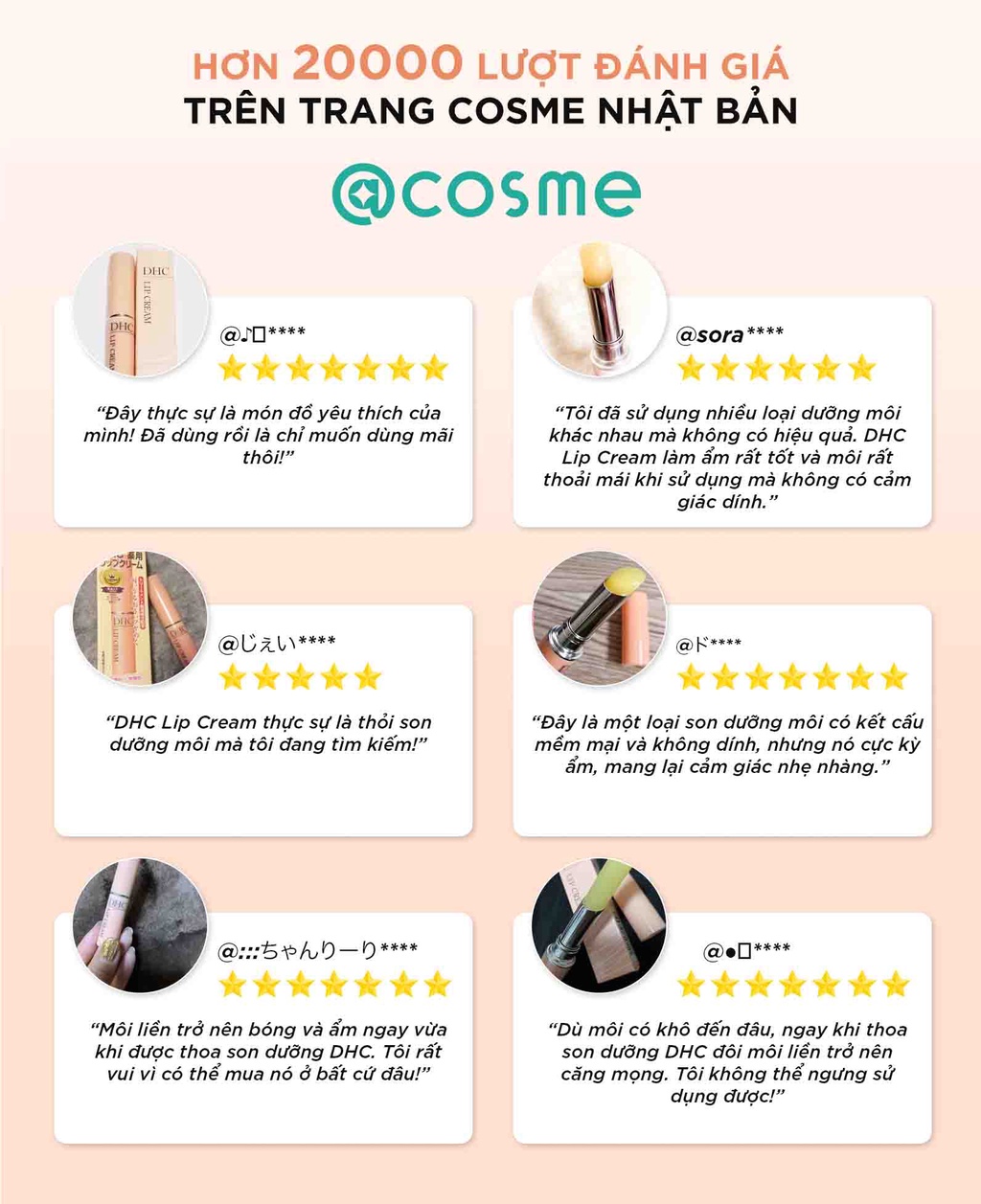 Son dưỡng môi DHC Lip Cream là sản phẩm vừa có tác dụng dưỡng ẩm tốt, vừa làm mờ thâm môi và chống lão hóa hiệu quả. DHC Lip Cream có thể giúp bạn tạo nên lớp nền hoàn hảo trước khi sử dụng các màu son bạn yêu thích để lên màu chuẩn đẹp.