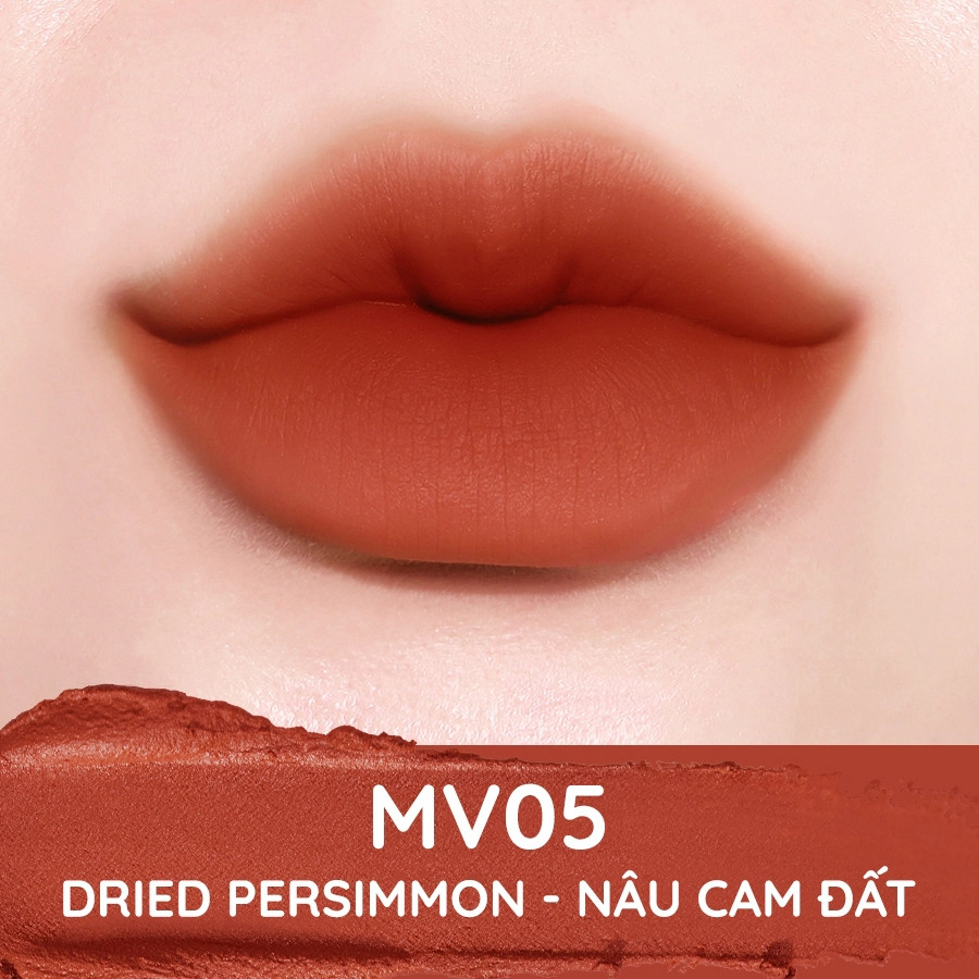 MV05 - Dried Persimmon: Màu đỏ nâu của quả hồng sấy cổ điển, mang lại sự ấm áp và thanh lịch, thích hợp cho cả những dịp trang trọng và hàng ngày.