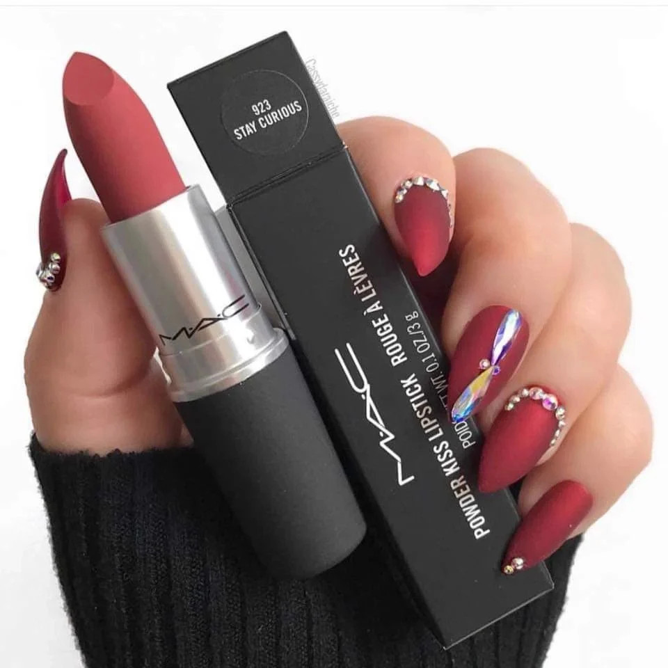 - Son MAC 923 Stay Curious - Powder Kiss Lipstick đẹp "Ngất ngây" này mang đến một sắc đỏ đất pha cam đẹp đến ngẩn ngơ , màu son mac cực"Hot"màu son làm cho bao cô gái biến hình trở nên cực kì thời thượng.