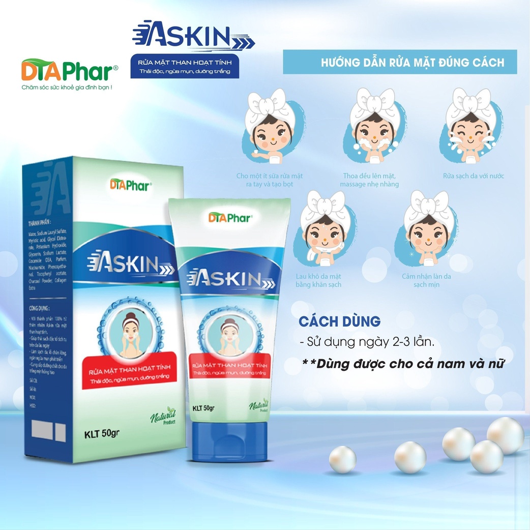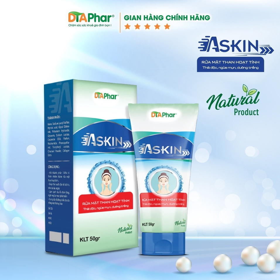 - Với thành phần 100% từ thiện nhiên, ASKIN rửa mặt than hoạt tính giúp thải sạch độc tố tích tụ trên da lâu ngày. Làm sạch lỗ chân lông, ngăn ngừa mụn phát triển. Cung cấp dưỡng chất cho da trắng mịn hồng hào.