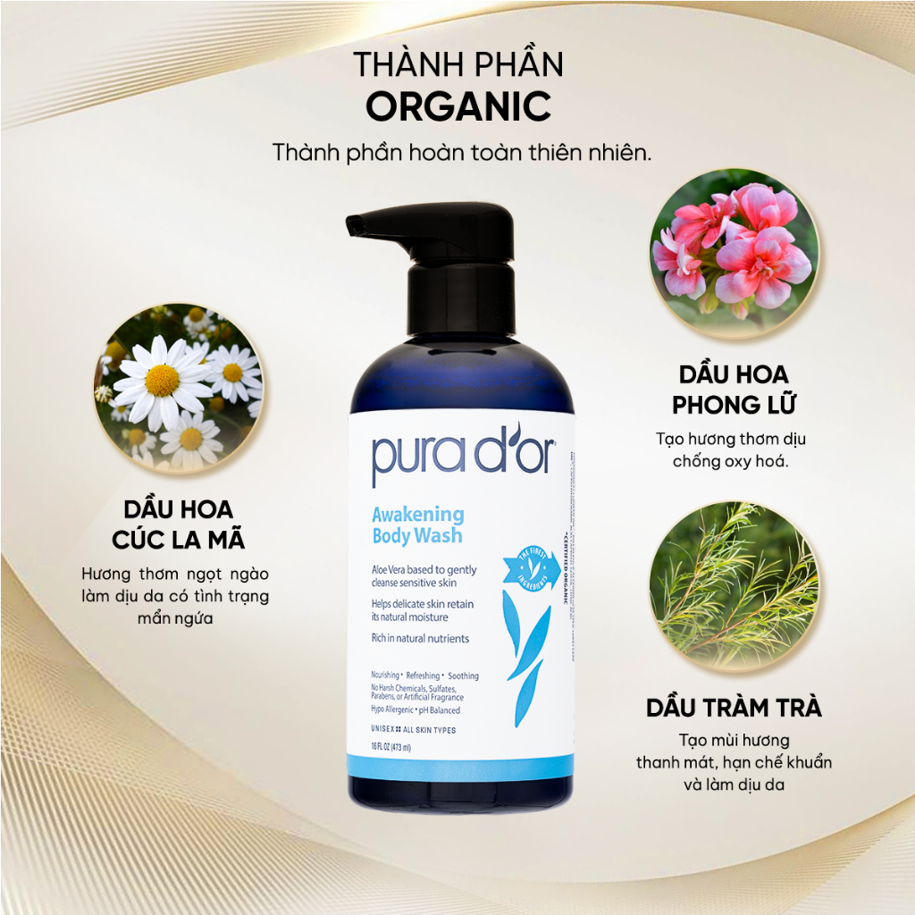 SỮA TẮM DƯỠNG ẨM PURA D'OR AWAKENING BODY WASH 473ML