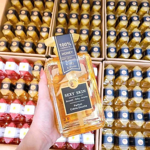 • Sữa tắm Sexy Skin chứa 100% nước hoa siêu thơm dai giữ cho hương lâu suốt nhiều giờ, mềm mại và không khô da.