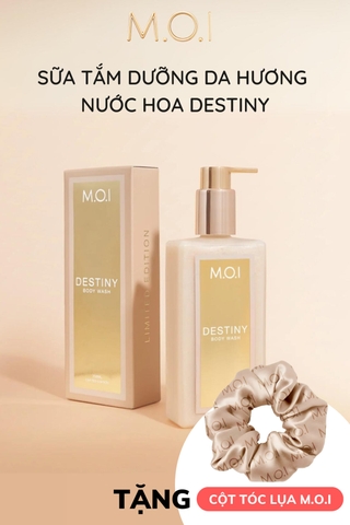 Bộ đôi sữa tắm dưỡng da M.O.I và Sữa dưỡng thể sáng da M.O.I lấy cảm hứng từ mùi hương đặc trưng của dòng Nước hoa cao cấp DESTINY phiên bản giới hạn, bộ đôi này không chỉ tạo nên những phút giây thư giãn với hương thơm tinh tế, cuốn hút mà còn làm sạch, tẩy tế bào chết, cấp ẩm sâu và dưỡng sáng da hiệu quả mang đến làn da mịn màng, rạng rỡ.