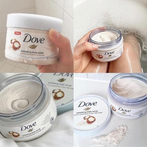 Tẩy da chết Dove là sản phẩm đình đám nhất hiện tại, được đánh giá là một trong những sản phẩm tẩy da chết giúp da loại bỏ các lớp da vảy sừng, lớp da chết bong tróc và trả lại một làn da mịn màng, trắng hồng. Với các thành phần chuyên dụng cho tẩy da chết, đặc biệt mùi hương của em Dove tẩy da chết Body không thể nào ngọt ngào hơn.