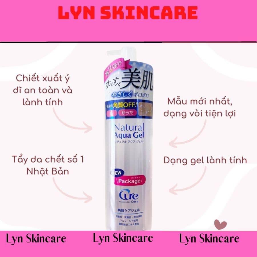 Tẩy tế bào chết là cụm từ khá quen thuộc với các chị em và đây là một trong những bước quan trọng để có thể tiến tới các công đoạn chăm sóc da,giúp loại bỏ những thành phần da bị hư tổn, những mảng da đã già cỗi và chết, một công đoạn mà những loại sản phẩm rửa mặt thông thường khó có thể làm được. Sản phẩm Tẩy tế bào chết Cure Natural Aqua Gel được làm bằng 90% là nước tinh khiết và các chiết xuất thực vật tự nhiên giúp tẩy da chết, dầu thừa , bụi bẩn ,mụn đầu đen, vi khuẩn một cách triệt để mà không làm khô hay kích ứng da.