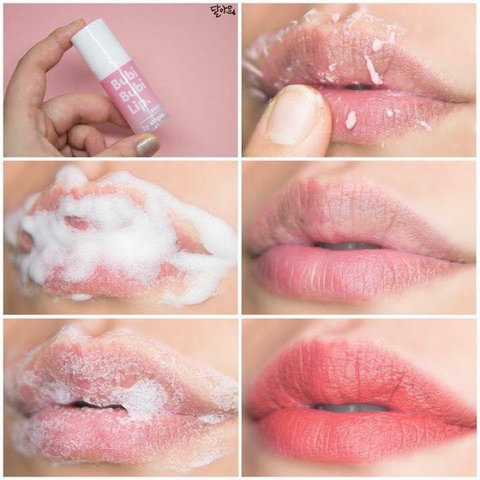 Ngay khi được thoa thành lớp mỏng trên môi, gel sẽ bắt đầu gợn những sủi bọt li ti có chứa AHA thiên nhiên đi sâu vào từng ngóc ngánh bờ môi có tác dụng làm mềm, làm hồng môi tự nhiên.