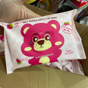 Tên sản phẩm: Thùng 10 Gói Khăn Giấy Ướt Gấu dâu Cao Cấp - BECHIP