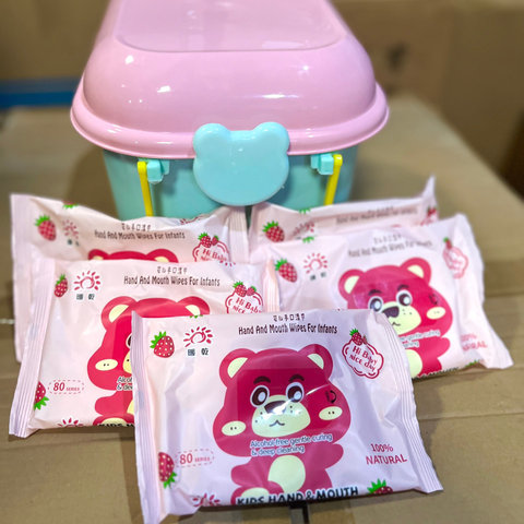 Set 10 gói khăn ướt gấu kèm thùng đựng có bánh xe