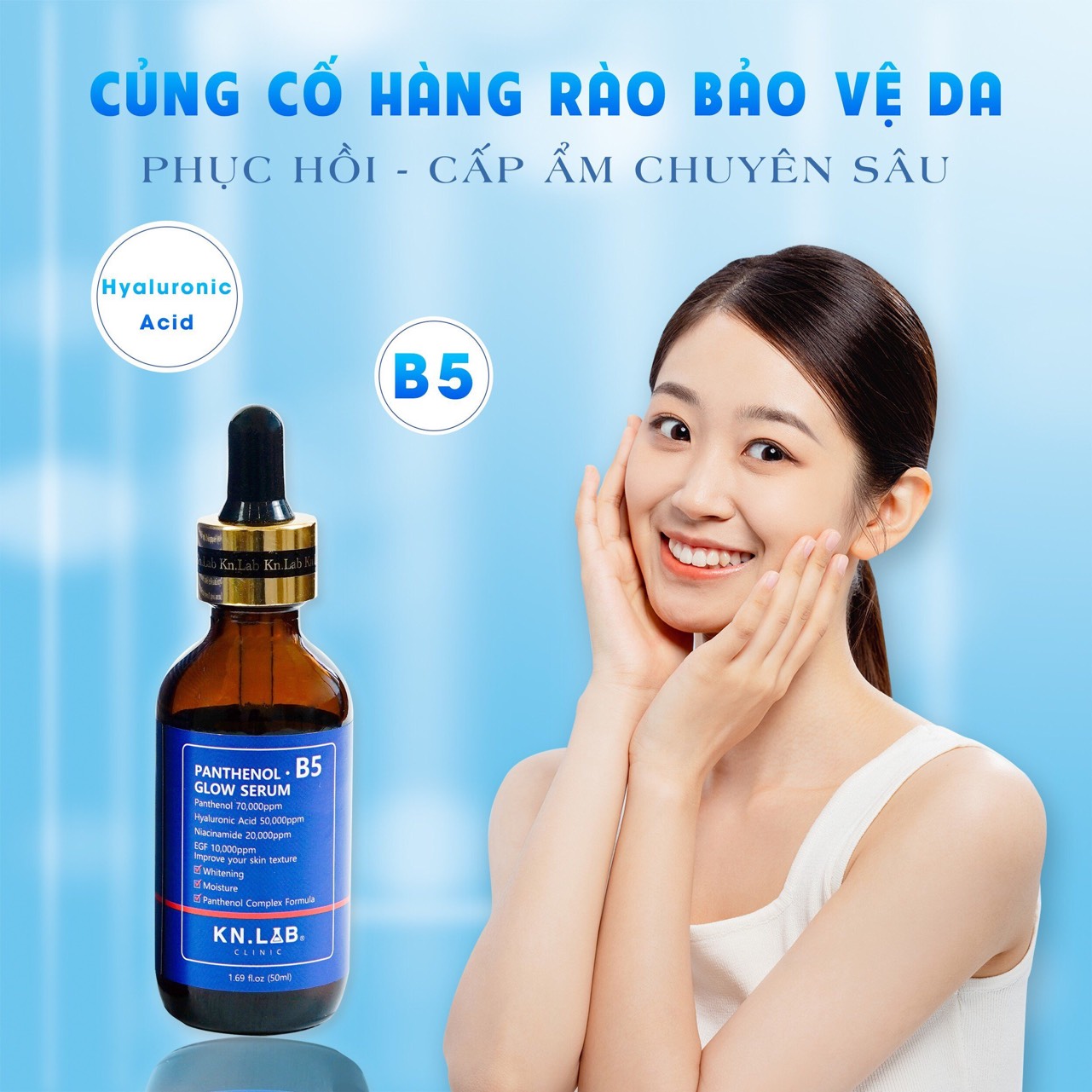 Tinh chất cấp ẩm phục hồi B5 Panthenol 7% 50ml KangnamLab - Kn.Lab 📌 Dung tích : 50ml / 1.69 fl.oz 📌 Thương hiệu: KangnamLab 📌 Xuất xứ : Hàn Quốc 🌱Panthenol là một chất dưỡng da mà chị em không thể thiếu trong quá trình dưỡng da của mình. Đây là một dưỡng chất an toàn tuyệt đối cho da và gần như không có tác dụng phụ. 📌 Đối tượng sử dụng: - Phù hợp với mọi loại da, đặc biệt là người có làn da khô hoặc thô ráp nên sử dụng vitamin B5 serum để cấp nước và dưỡng ẩm cho da rất hiệu quả. - Những người da nhạy cảm và bị tổn thương muốn được phục hồi nhanh chóng - Những người đang bị lão hoá và muốn trẻ hoá làn da 📌Thành phần - Panthenol 70.000ppm - Axit Hyaluronic 50.000ppm - Niacinamid 20.000ppm - EGF 10.000ppm - Chiết xuất rau má, chiết xuất cây chè, bakuchiol, nước hoa hồng, dầu cam, chiết xuất gạo, chiết xuất bông cải xanh, chiết xuất củ nghệ, chiết xuất cam thảo, chiết xuất dây diếp cá, Chứa chiết xuất hoa mẫu đơn, chiết xuất hạt mơ, và 7 loại vitamin 📌 Công dụng: - Cải thiện khả năng chữa lành vết thương cũng như tái tạo làn da một cách tự nhiên. - Làm trắng da nhờ có thành phần Niacinamid - Làm dịu vết thương - Dưỡng ẩm lâu dài, tạo rào chắn bảo vệ da khỏi bụi bẩn hay các thành phần tẩy trang, các tác nhân làm khô da khác - Tăng cường tái tạo lớp bảo vệ ngoài cùng, làm giảm thiểu đáng kể tình trạng mất nước qua da. - Chống oxy hóa mạnh. - Giúp kiểm soát bã nhờn và kháng khuẩn tốt hơn 📌Cách sử dụng: Bước 1: Làm sạch da, cân bằng da Bước 2: Lấy 2-3 giọt serum thoa đều khắp mặt để dưỡng chất thẩm thấu vào da. Bước 3: Dùng các bước dưỡng da tiếp theo