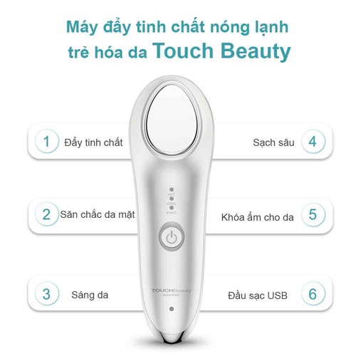 - Máy đẩy tinh chất nóng lạnh sóng âm trẻ hóa da cao cấp TouchBeauty ra đời chuẩn 2 nhiệt độ 42 độ C và 6 độ C cho quy trình đẩy tinh chất toàn diện hơn cùng với sóng âm tác động sâu vào bên trong da. Thiết kế sang trọng đẳng cấp khi cầm.
