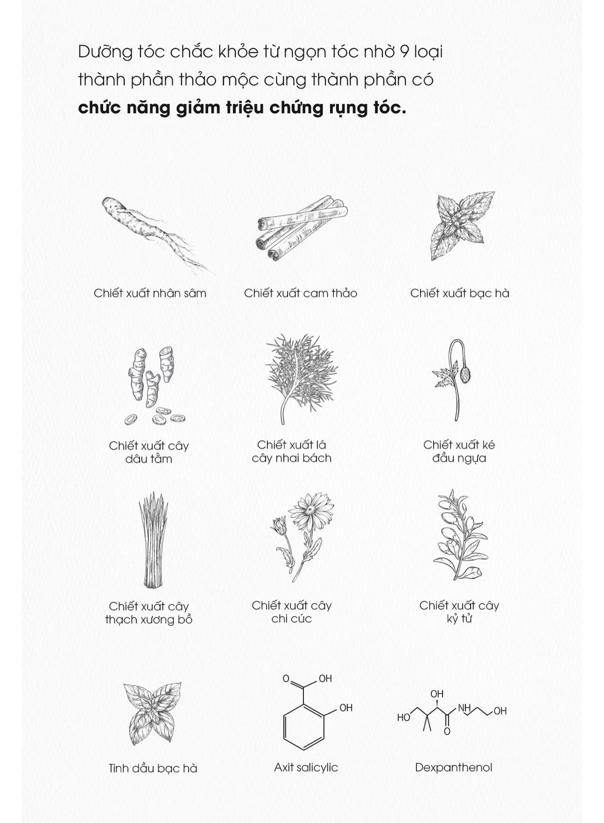 🎼 Kích thích MỌC TÓC NHANH nhờ cung cấp tại chỗ các loại hoocmon thiếu hụt và các vi chất cần thiết nuôi dưỡng da đầu