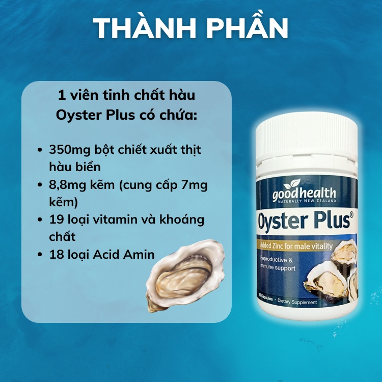 Bạn đang muốn tìm loại tinh chất hàu tốt thì Good Health Oyster Plus Zinc là một sự lựa chọn không thể bỏ qua. Bởi vì khác với nhiều loại chứa chiết xuất hàu khác, sản phẩm này không chỉ cung cấp các chất dinh dưỡng quan trọng cần thiết cho hệ miễn dịch và sức khỏe sinh sản nam giới, mà còn giúp xương khớp chắc khỏe, hoạt động dẻo dai.