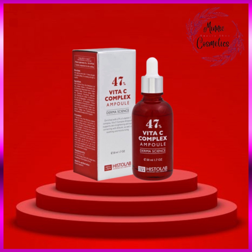 - Tinh Chất Histolab Vita C Complex Ampoule 47% Dưỡng Sáng Da chứa 47% phức hợp Vitamin C giúp dưỡng trắng da, ngăn chặn sự hình thành melanin gây sạm da, cải thiện sắc tố, làm đều màu da, thúc đẩy sản sinh Collagen, làm tăng khả năng đàn hồi cho da.