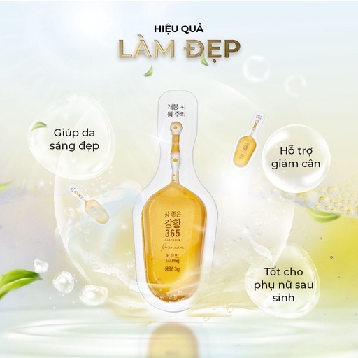 Nano Curcumin 365 Premium là sản phẩm được nhập khẩu chính ngạch từ Hàn Quốc. Sản phẩm chiết xuất curcumin được tổng hợp bằng công nghệ nano dưới dạng các phân tử siêu nhỏ, nhờ đó làm tăng khả năng hấp thụ hoạt chất curcumin vào cơ thể. Sản phẩm không mùi, không vị, dễ dàng hòa tan trong nước, đồ uống, phù hợp với mọi đối tượng, đặc biệt cho phụ nữ sau sinh, người có chức năng dạ dày và gan yếu, người muốn làm đẹp da.