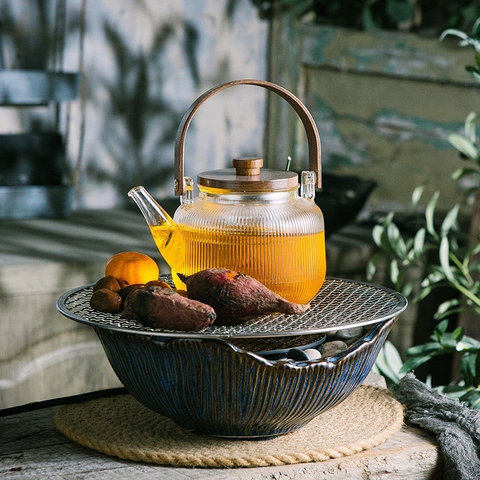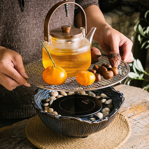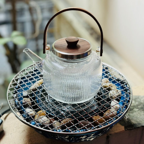 ✅✅ 1 bộ như hình 1 bếp 1 ấm 1 túi sỏi , 1 vỉ nướng