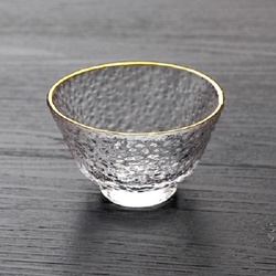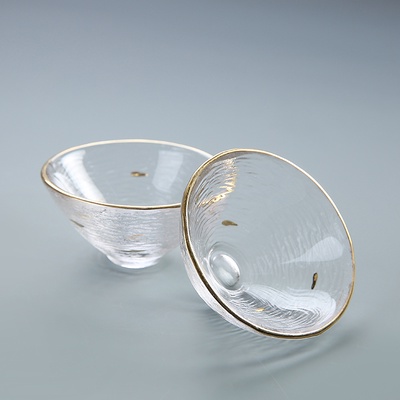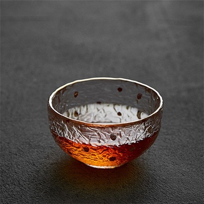 - Chén uống trà thủy tinh miệng lớn điểm hạt ngọc.