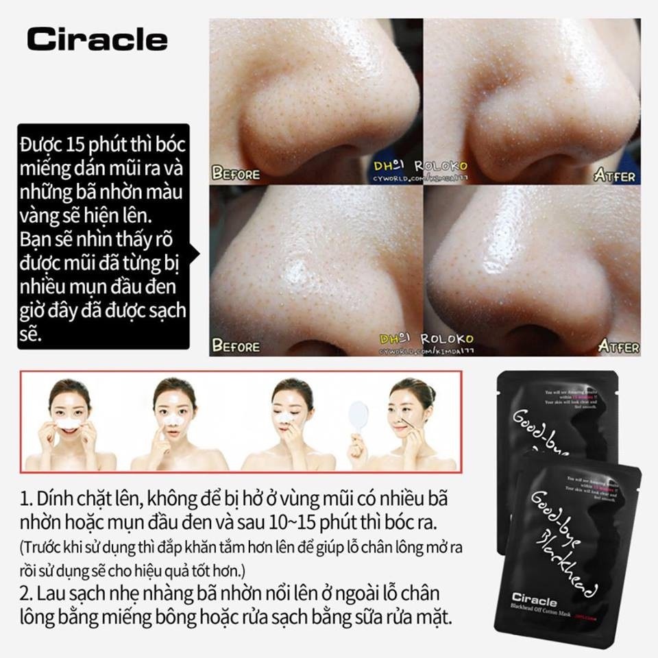 Miếng Serum Đẩy Mụn Đầu Đen Ciracle có hình dáng như một miếng lột mụn ở mũi thông thường. Miếng bông cotton có thấm serum sau khi đắp lên vùng mũi sẽ giúp nhẹ nhàng đẩy nhân mụn trồi lên mà không gây tổn hại đến bề mặt da. Bạn sẽ cảm nhận được hiệu mà sản phẩm mang lại với một làn da mềm mại và sạch sẽ. Sản phẩm hiện đã có mặt tại Hasaki.