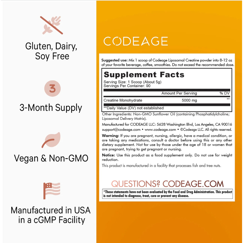 *** Thành phần của Liposomal Creatine Monohydrate KHÔNG chứa: